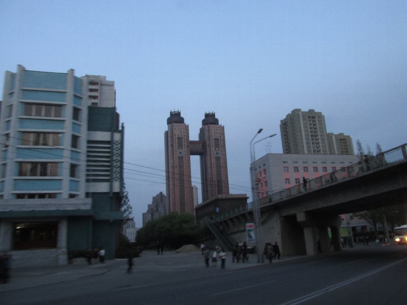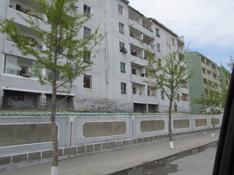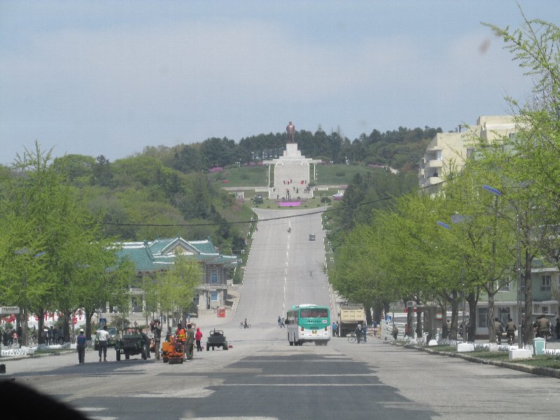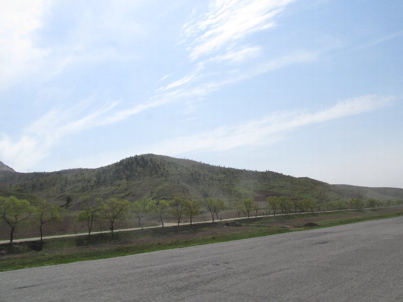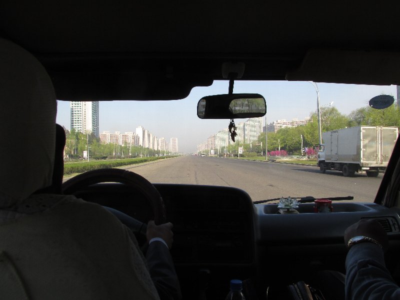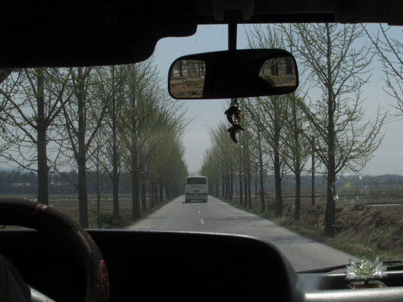 さっそく車で国境の板門店へ向かう。2時間30分くらいとのこと。平壌市内は道幅が広い。