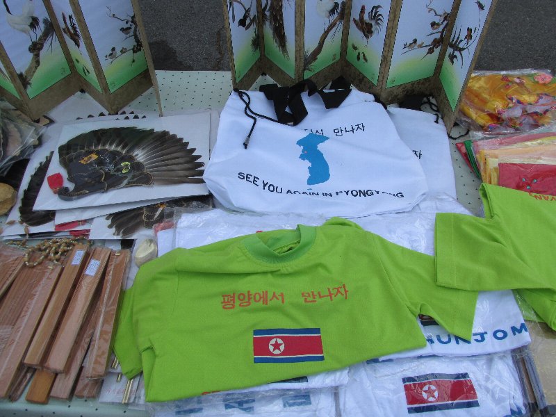 Tシャツを買おうと思ったが、デザインがいまいちなのとガイドが言うにはこれから向かう開城でもお土産やがあるらしいのでここでは買わず。