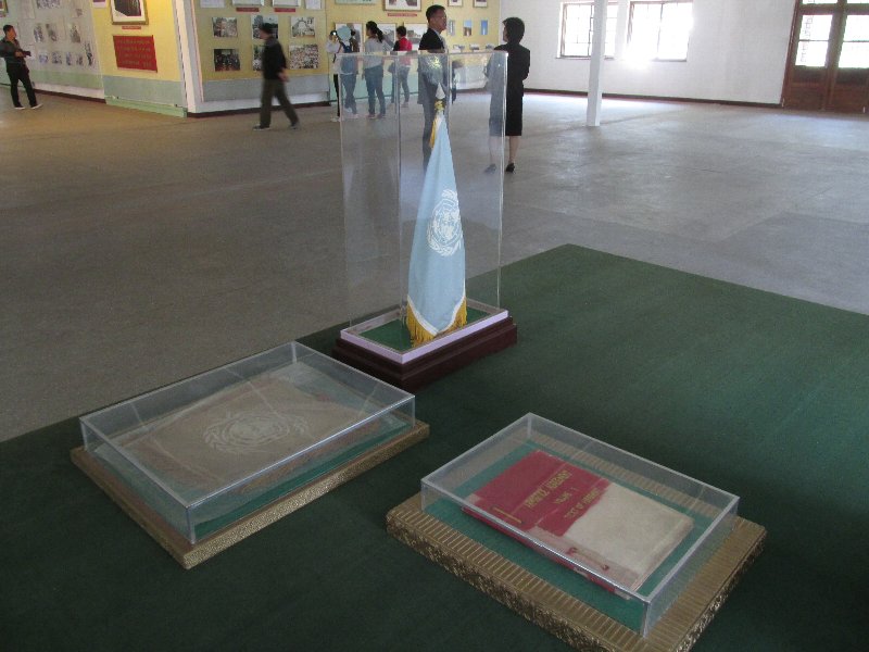 停戦調印停が行われた建物へ。アメリカは自国の恥となるためアメリカ国旗じゃなく国連の旗を持ってきたとガイドから説明がありました。