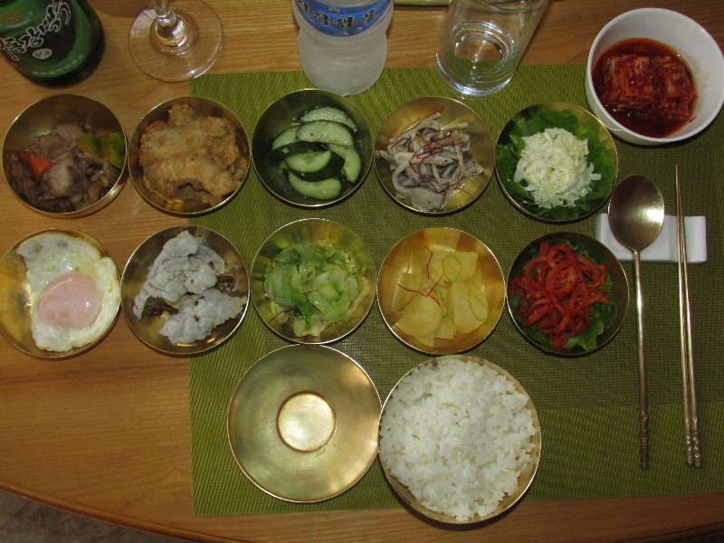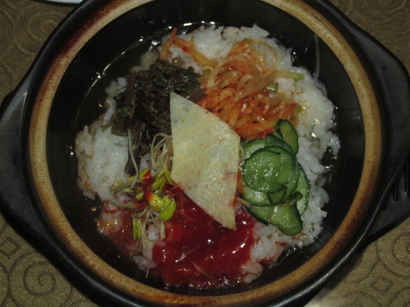 夕食のレストランでは、ビビンバを注文。他のガイドたちは冷麺を選ぶ。