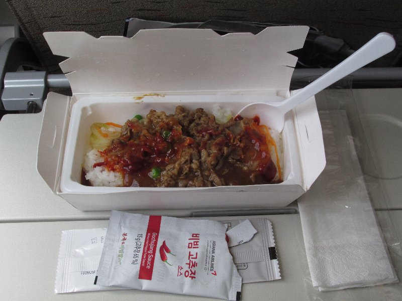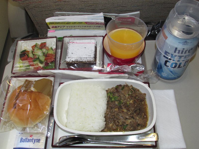 中央アジアの旅のスタートは、アシアナ航空で大阪→ソウル→アルマトイの空の旅。ソウル行きの機内食でプルコギが出た。