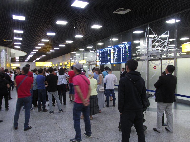 カザフスタンの最大都市アルマトイに着く。空港ではパスポートコントロールの行列で出るのにかなり待たされる。