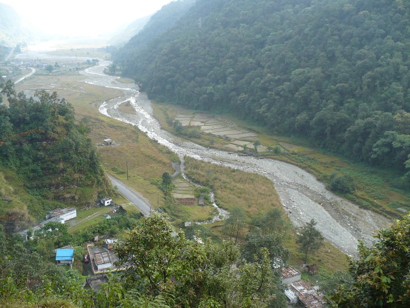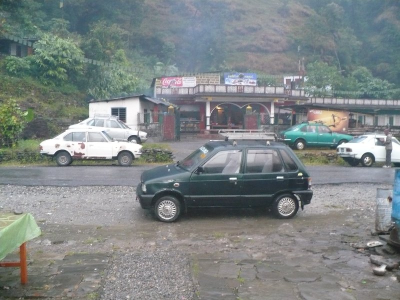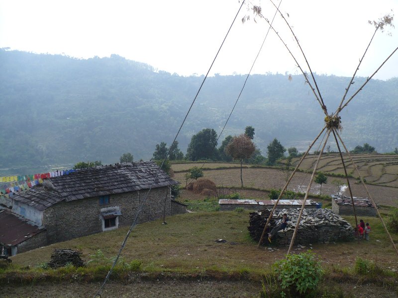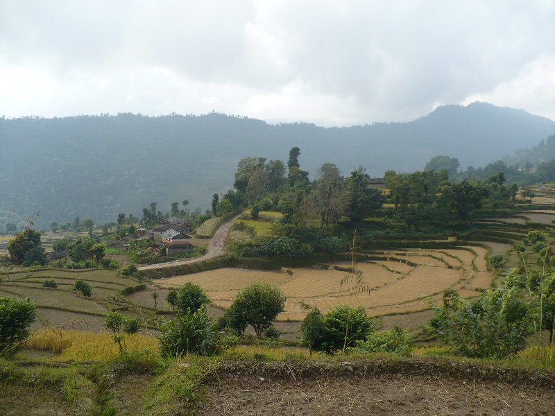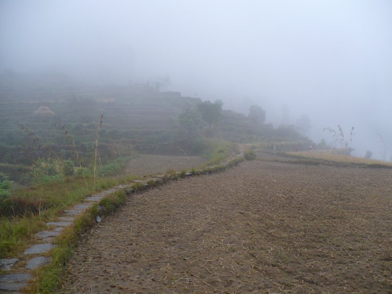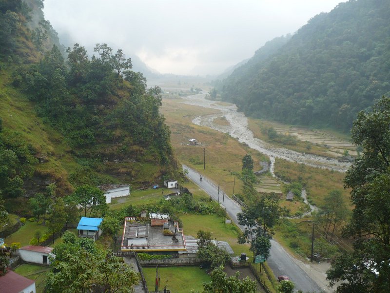 最初のスタート地点が見えてきました。結局、曇りでヒマラヤ山脈は見えませんでしたが雨は止み地元の面白い風景が見られて満足です。