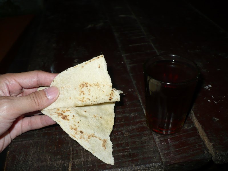 近くの食堂でチャパティを食べながら雨が止むのを待つ。