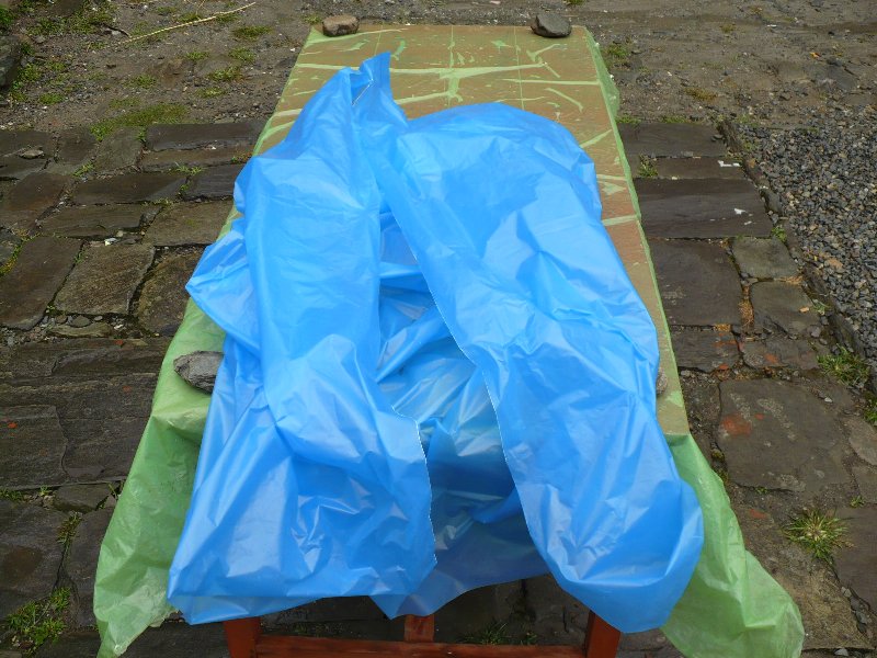 ここの食堂の人が親切にも簡易雨がっぱを作ってくれた。