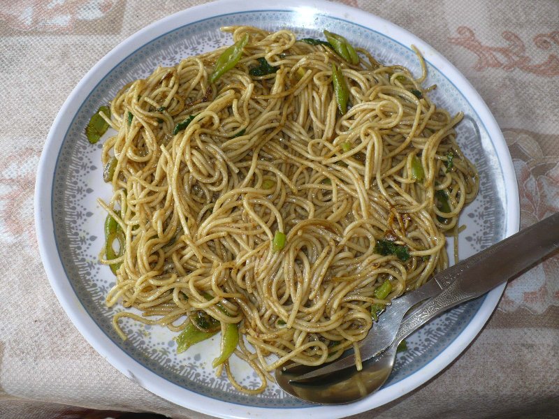 約2時間くらいでダンプスに着きました。そのへんの食堂で焼きそばを食べます。見た目は平凡ですがこれがカレー味でめちゃうま。