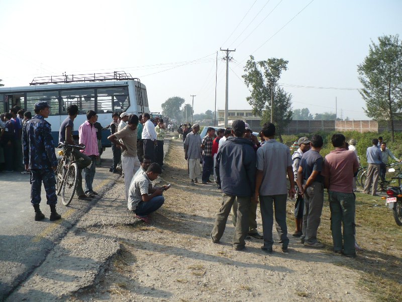 今日は昨日乗った夜行バスで6AMには国境に着きインド入国し、そのままブッダガヤへ直行バスで行く予定です。しかし夜行バスの道中で、何かのストライキのため通行止めが何回かあり待たされました。こんな感じでなにやらもめています。