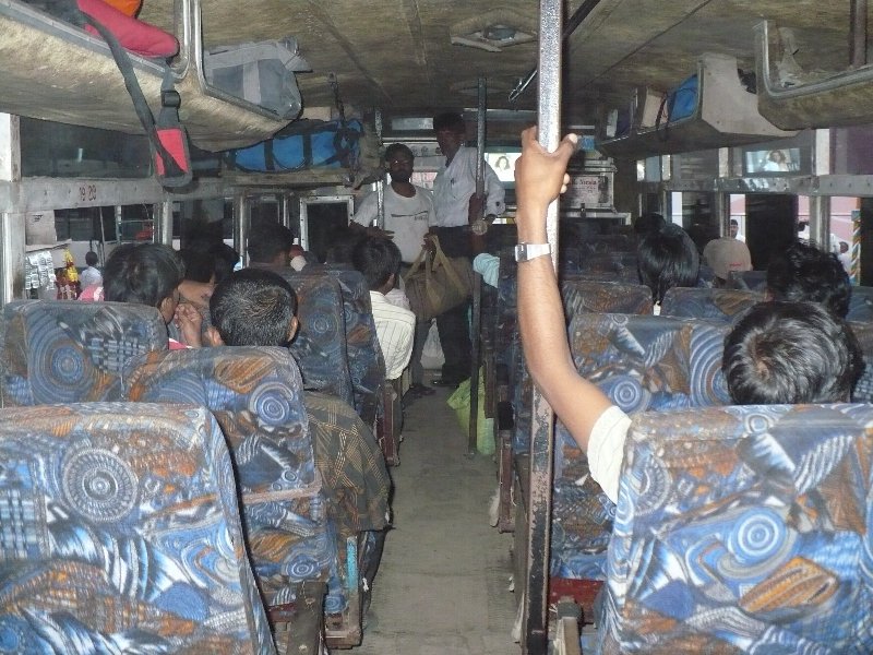 このなにもない辺境のバス乗り場で夜まで待つ気になれず、ここからブッダガヤの中間地点のパトナーという街に行くことにした。パトナー行きなら12AMにバスがあるからだ。これが乗ったバス。パトナーへは7PMに到着予定。