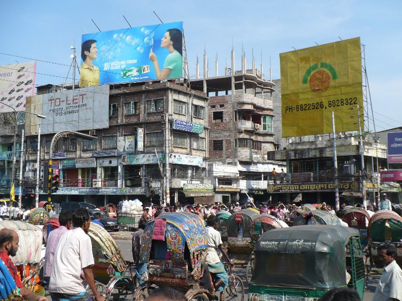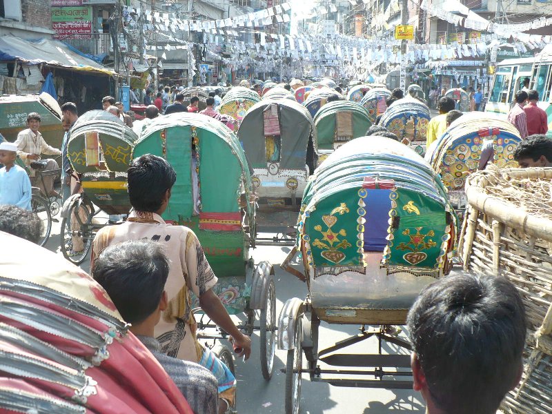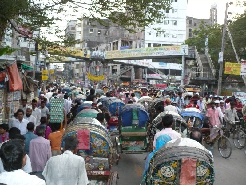 世界的な人口密集地帯のダッカでは、通りには人やサイクルリクシャであふれています。