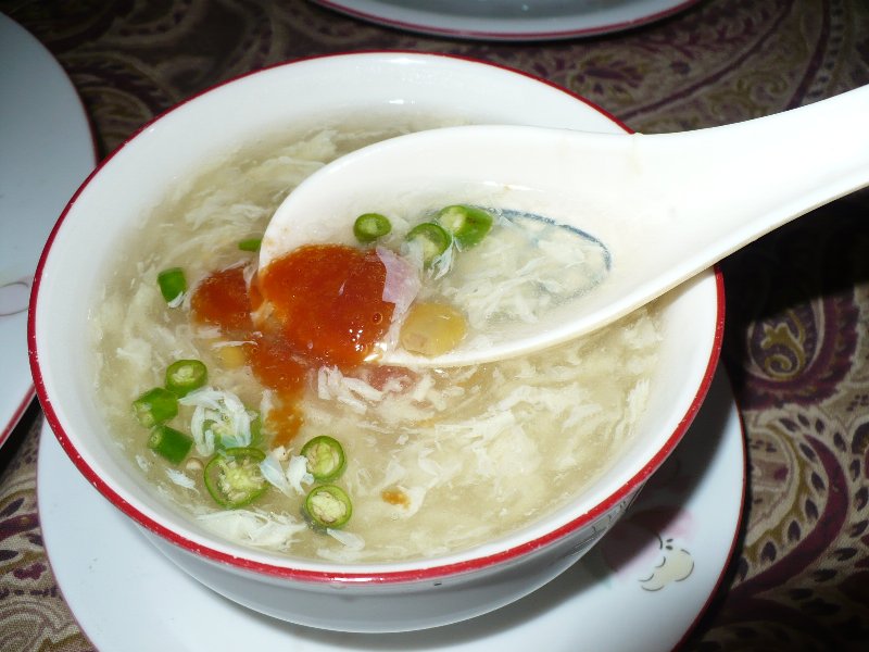 あっさり卵スープが、トウガラシを入れると激辛になった。
