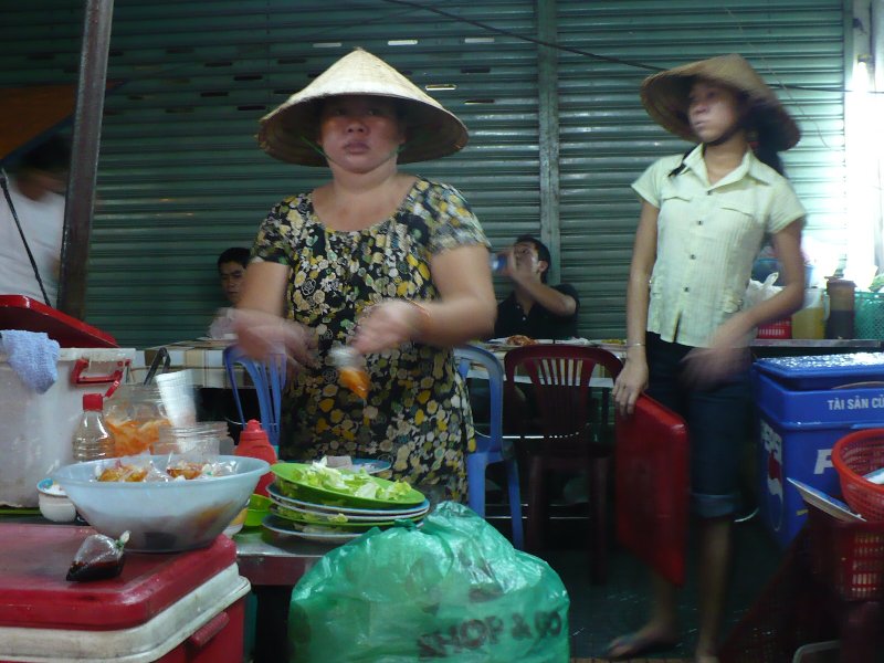 夕食はベンタイン市場のそばの屋台で。