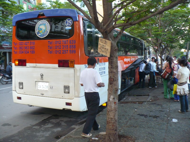 今日はベトナムのホーチミンからカンボジアのプノンペンへの国境越えです。宿をチェックアウトしてバス乗り場へ。