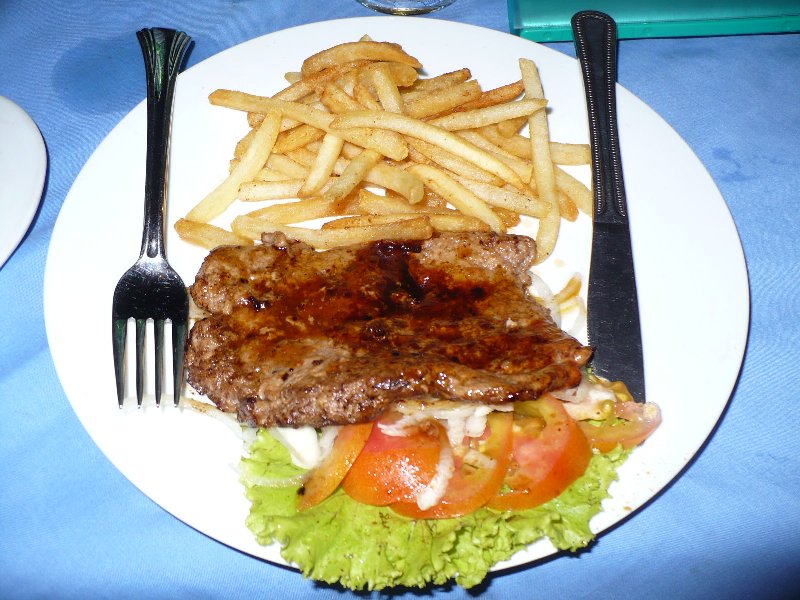 宿近くのレストランで夕食。ステーキを。