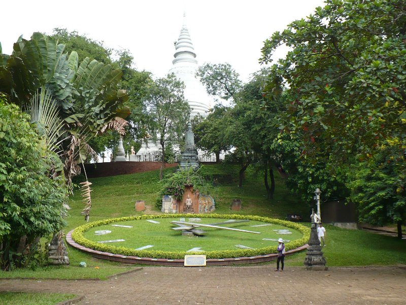 歩いてワットプノンへ。クメール語でワットはお寺、プノンは丘という意味。入口に目立つ時計台があります。